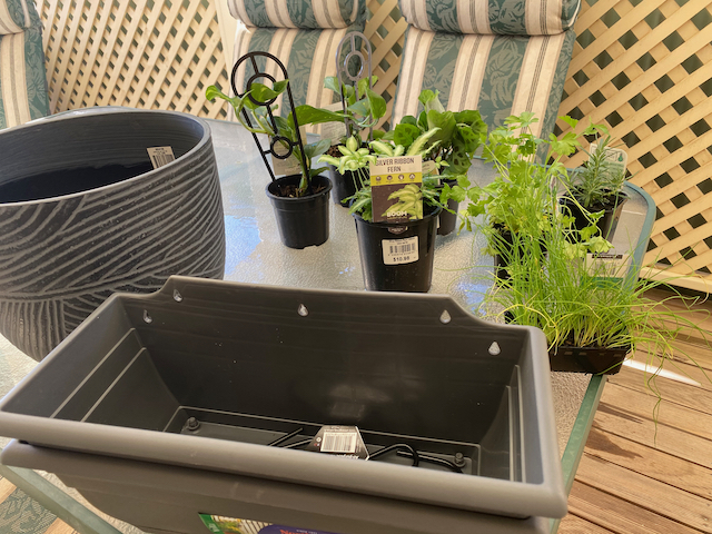 Saturday, I visited Bunnings and purchased some plants and pots. Today, I planted some herbs in the courtyard garden bed and I now have a display under the pergola with a couple extra hanging pots and I finally potted the plant Melissa gave me a few weeks ago into a beautiful big grey pot which matches in nicely.